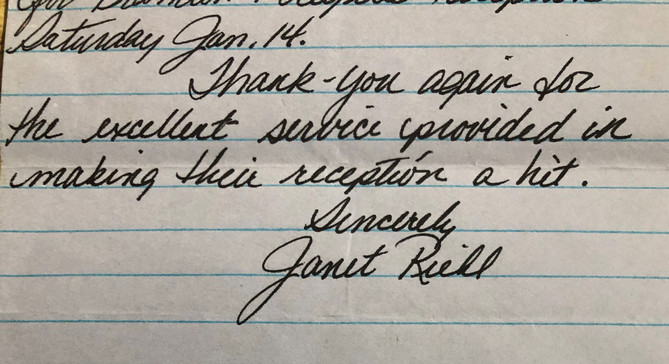 Thank-you again for the excellent service provided in making the reception a hit.